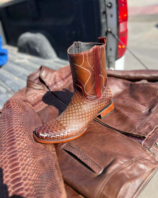 Original Python Leather Shiny Tobacco Cowboy Boots