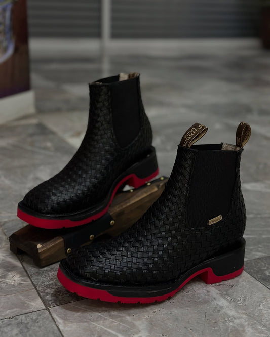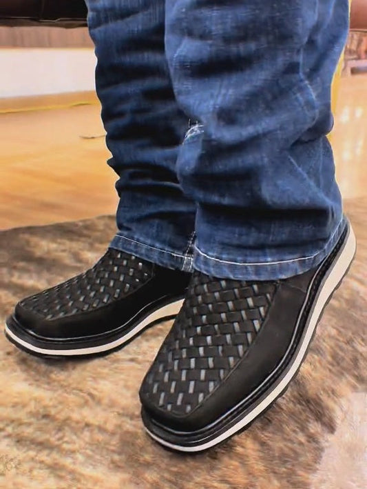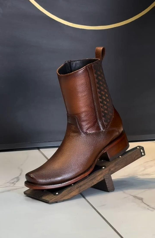 Hand-woven Laser-finished Cowhide Leather Cowboy boots